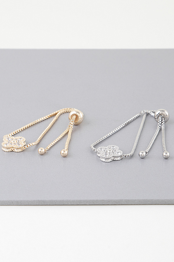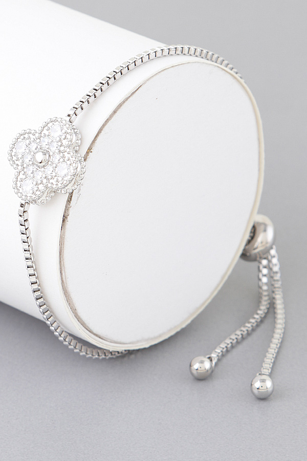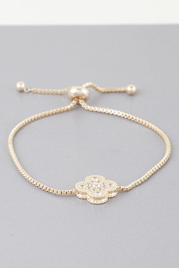 • * Introducing the "Bejeweled Clover Box Chain Bracelet" – a stunning piece that combines the beauty of nature with luxurious design. Featuring a delicate flower motif and a sparkling rhinestone clasp, this bracelet is perfect for those who appreciate the finer things in life. Elevate your accessory game with this exquisite addition from H&D Accessories.