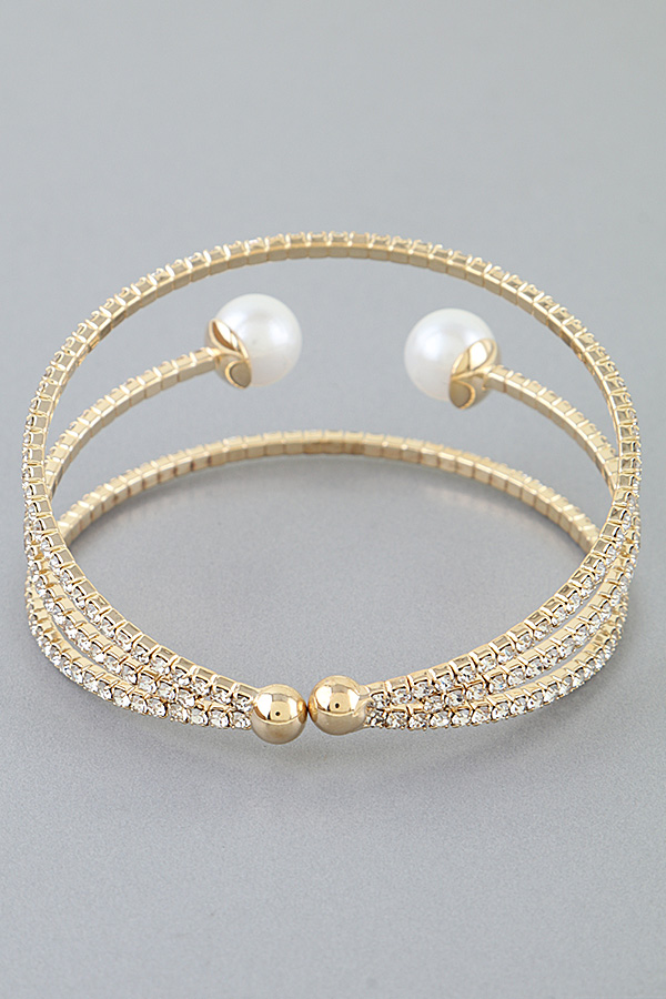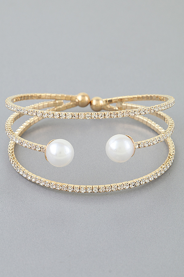- * Triple Pearl Bejeweled Open Cuff Bracelet