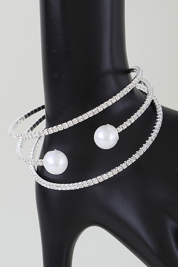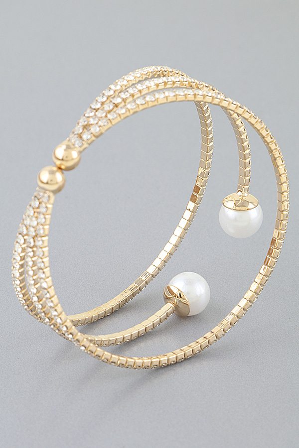 - * This Triple Pearl Bejeweled Open Cuff Bracelet from H&D Accessories features a multi-layer design with sparkling accents and lustrous pearl details, offering an adjustable fit for versatile styling. Ideal for special occasions, evening events, or elevating everyday outfits, it adds a touch of refined glamour to any look.