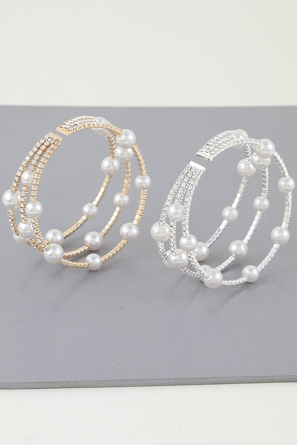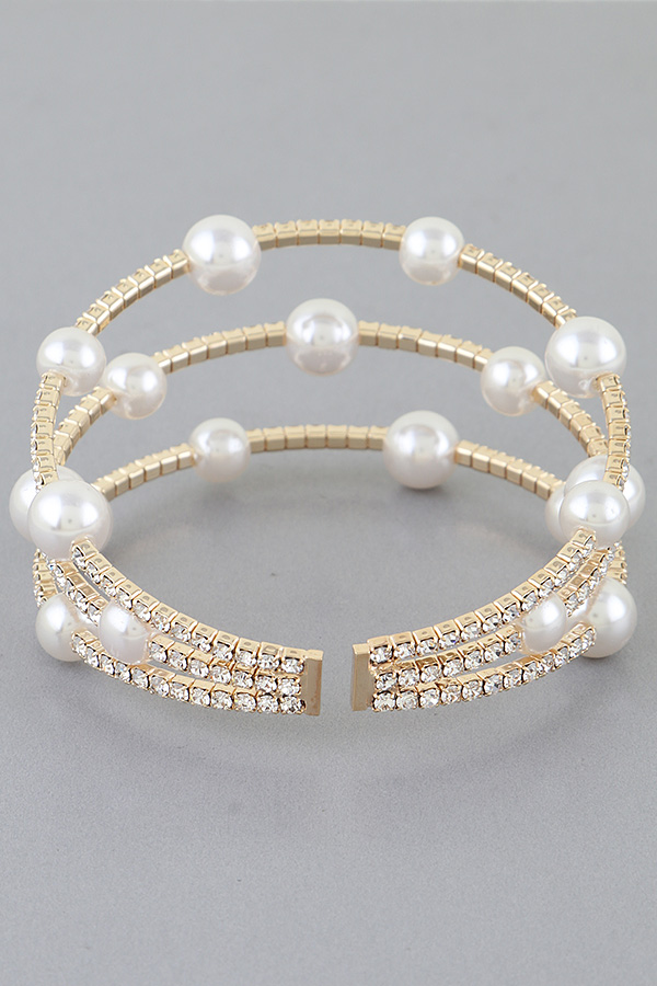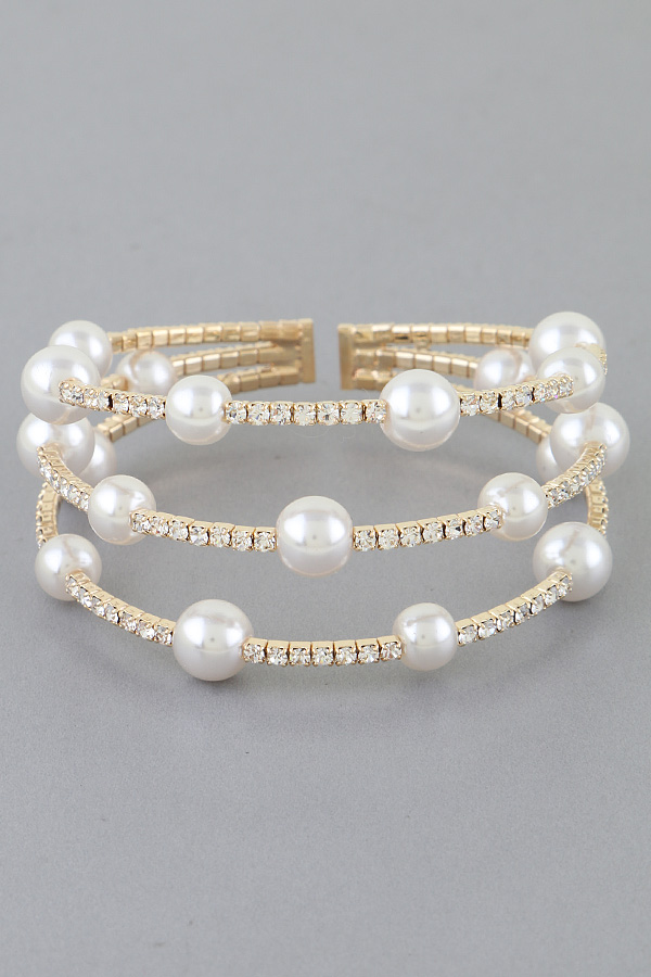 • * This is a Triple Pearl Jeweled Bracelet from H&D Accessories. It features three rows of bracelets. Each bracelet combines pearls and jewel - like elements. The pearls are evenly spaced, and the jewel - like decorations add a touch of elegance. The structure of the triple - row design creates a layered and sophisticated look, showcasing fine craftsmanship.