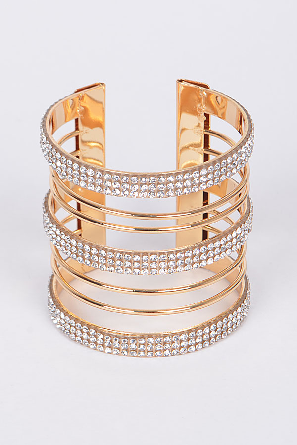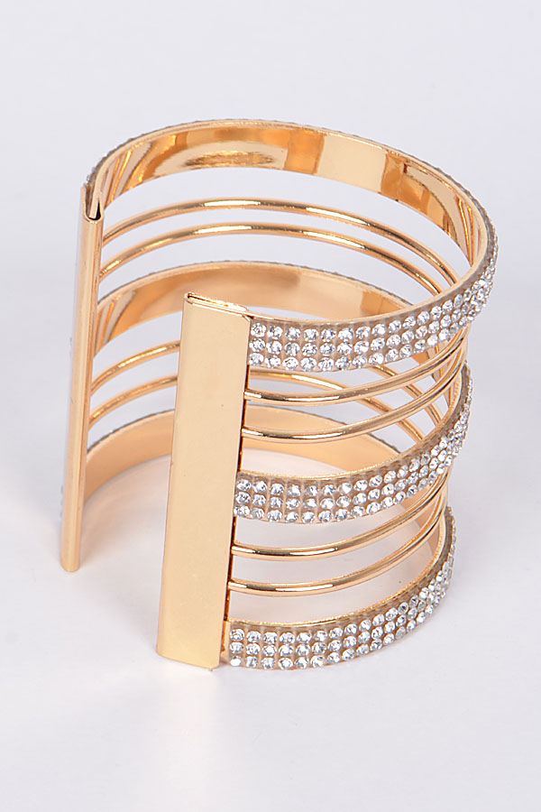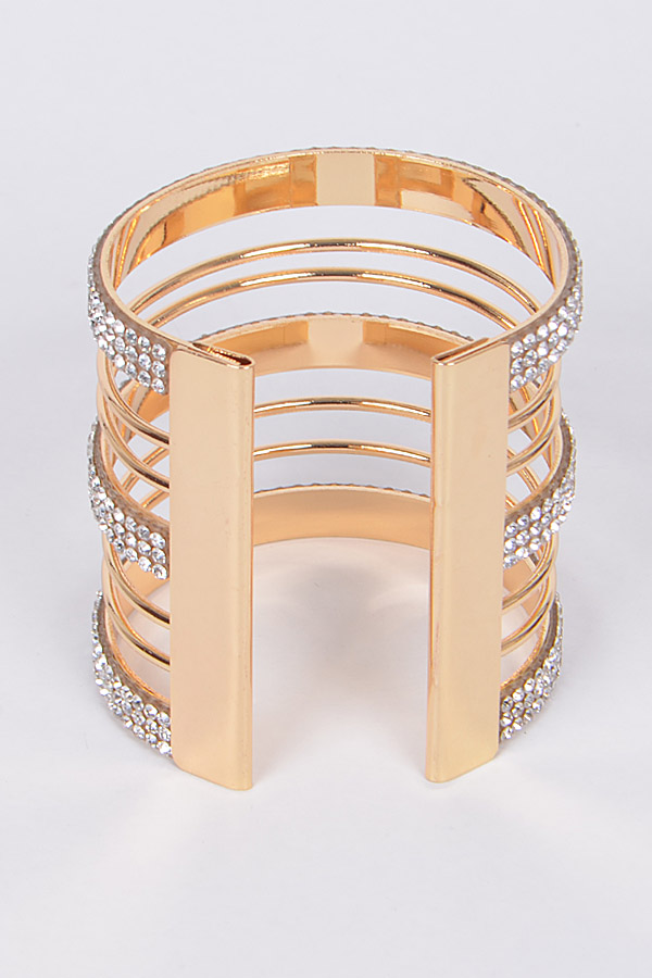 - * 3 Solid Thick Lines Rhinestones Open Arm Bracelet