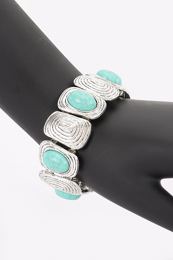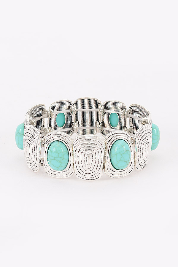 • * This bracelet from H&D Accessories showcases an eye - catching design. It has metal - like components with an embossed pattern and stone - like inlays.