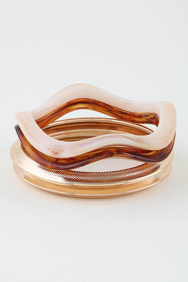 • * Multi Marble Wave Cuff Bracelet from H&D Accessories features a set of bracelets with a distinctive wave - like design and a marble - inspired look. The combination of different - styled bracelets in the set adds a unique charm. It's perfect for elevating your everyday casual outfits or adding a touch of elegance to your party ensembles.