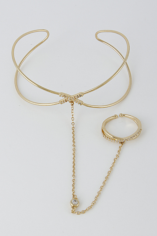 - * Open Neutron Inspired X Bracelet With Ring 6HBH9 * 2.4 x 2" approx.