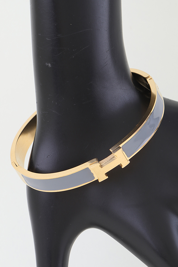 • * Solid Concrete H Cuff Bracelet from H&D Accessories features a sleek, structured cuff design with a prominent "H" - shaped clasp at the center. The smooth band and precise detailing give it a refined look. Perfect for adding a touch of sophistication to your outfit when going to a business meeting or a casual lunch with friends.