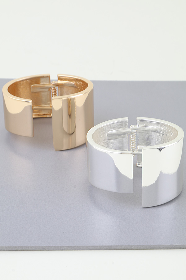 - * The Modern Sleek Wide Cuff Bracelet from H&D Accessories is a stylish piece. It features a wide, smooth design with a secure hinge mechanism for easy wearing. The bracelet has a contemporary look, making it suitable for both casual and formal occasions. It adds a touch of elegance and sophistication to any outfit.