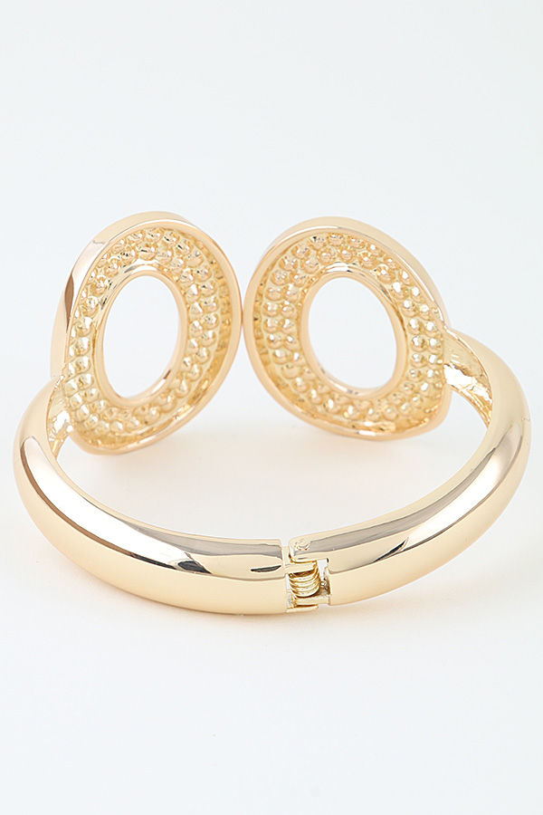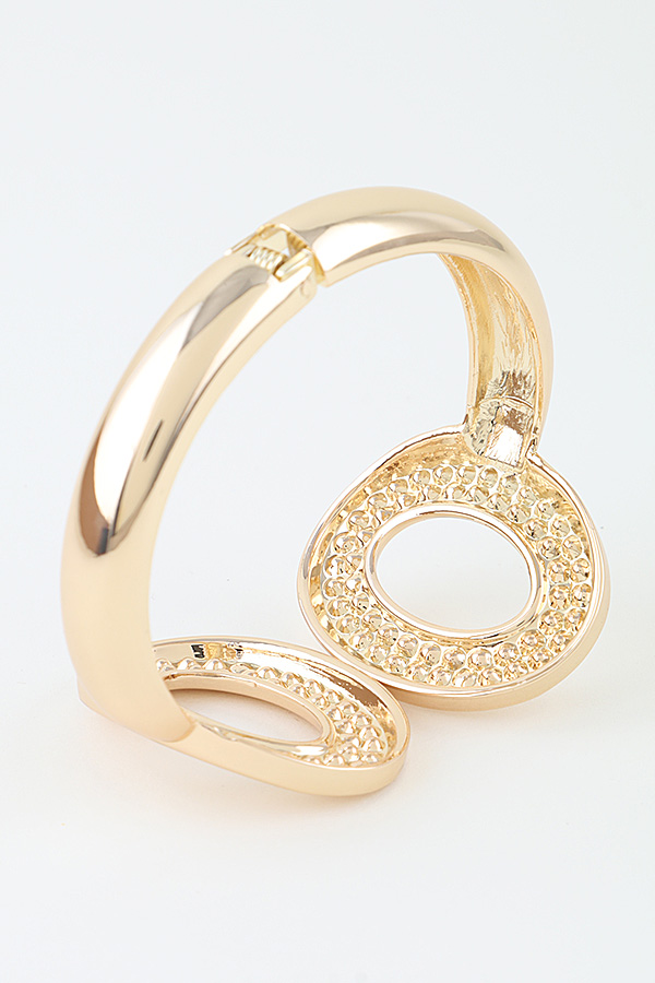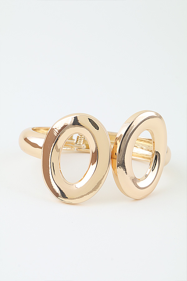 - * This striking cuff bracelet from H&D Accessories features a bold, modern design defined by three large, polished open-link elements. Each link is crafted with a smooth, reflective finish that catches light, creating a luminous appearance. The open, oval-shaped cutouts at the center of each link add a sense of lightness and contemporary flair to the piece. The bracelet is designed as a cuff, allowing for easy wear and a comfortable fit on the wrist. Its substantial yet sleek silhouette makes it a standout accessory, ideal for elevating any ensemble with its sophisticated, statement-making style.