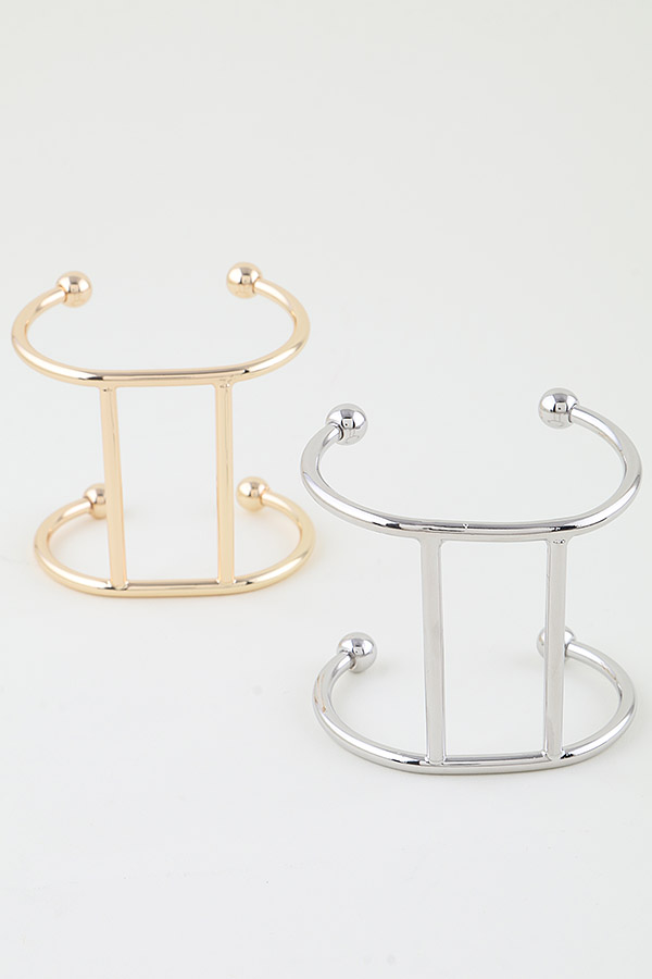- * This Wide II Open Cuff Bracelet from H&D Accessories is a striking piece of jewelry. It features a bold, open - ended cuff design with a wide band. The bracelet is crafted with smooth, polished metal, and the distinctive "II" shape adds a modern geometric touch. The spherical ends enhance the aesthetic appeal, making it a stylish accessory for those who prefer contemporary and statement - making jewelry.