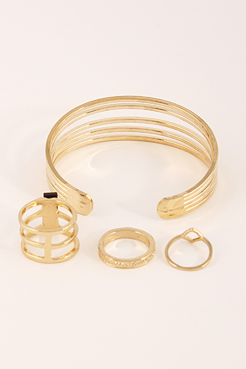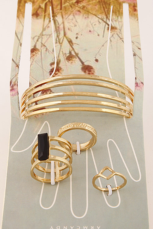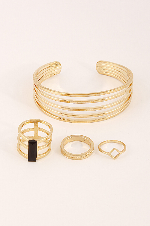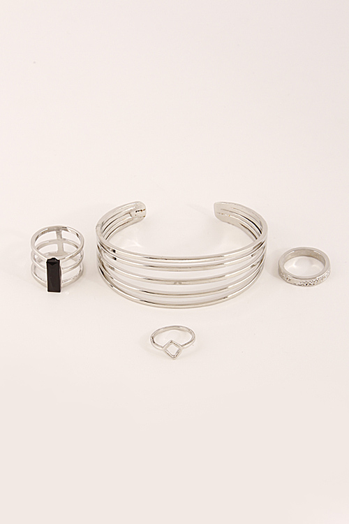 - * Thin Multi Layered Open Bracelet With Rings Set 6CAC9 * 2.5 X 2.1" approx.
