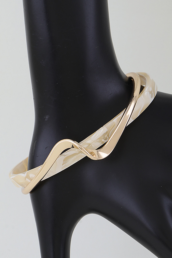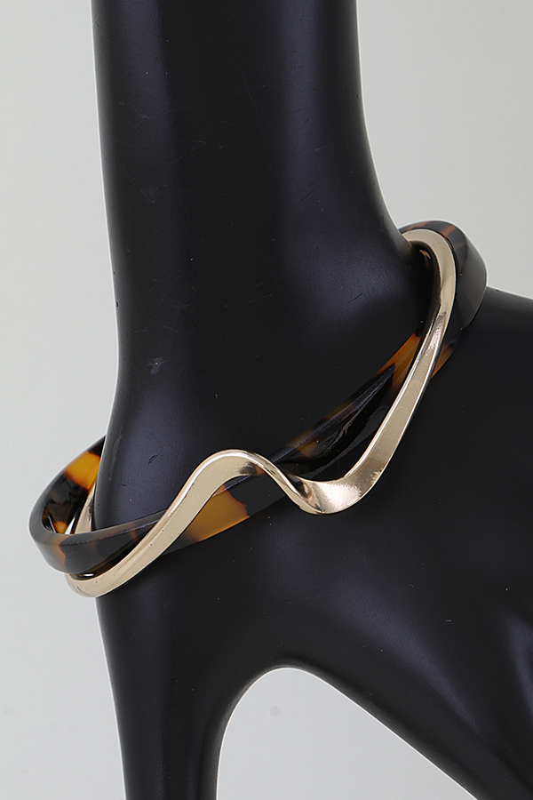 - * This Modern Tortoise With a Twist Bracelet from H&D Accessories features a sleek, open cuff design that pairs a textured, patterned band with a polished, curved metallic twist detail, creating a dynamic, contemporary look. Its distinctive style makes it a great accessory for adding flair to everyday outfits: wear it with a simple t-shirt and jeans for a casual weekend errand run, or pair it with a blouse to bring a chic touch to a lunch meeting. The blend of its textured base and sculpted metallic twist allows it to transition smoothly between relaxed and semi-polished occasions, adding a modern, eye-catching element to any ensemble.