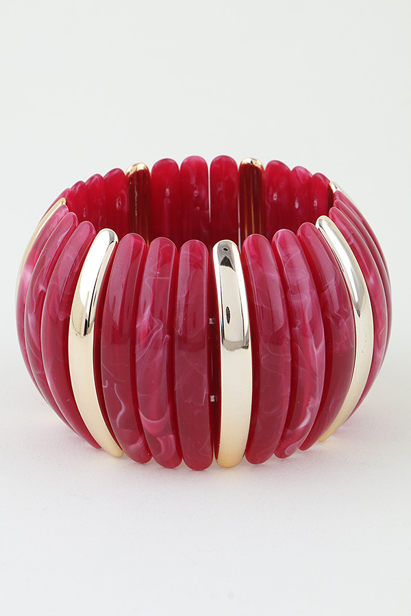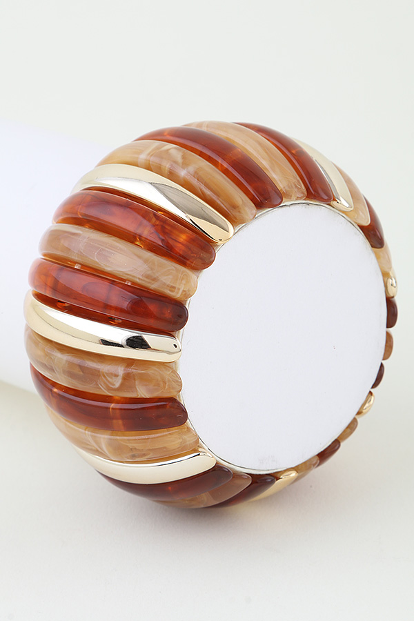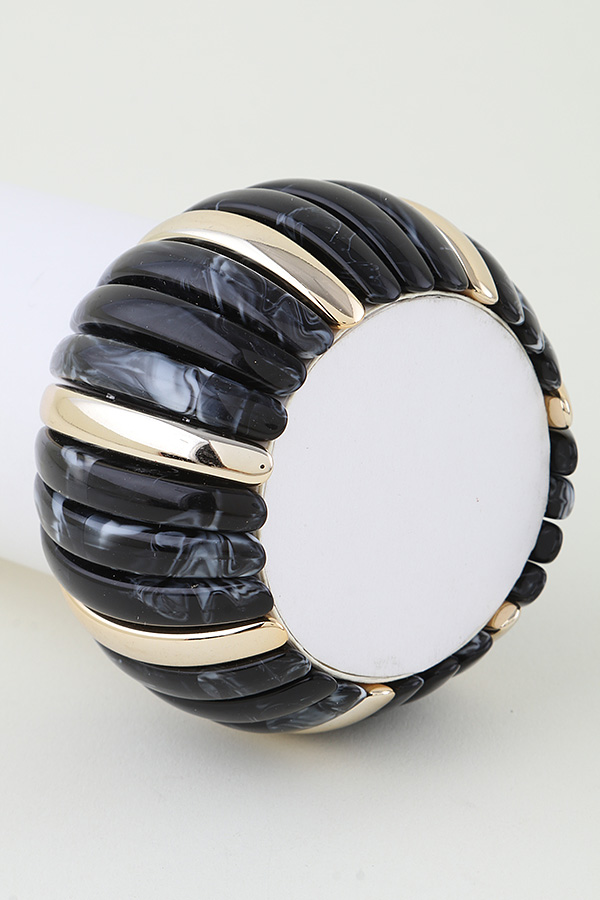 - * This Wide Curved Marble Stone Cuff Bracelet from H&D Accessories features a unique design with wide, curved marble stone elements artfully combined with polished metal accents. It showcases exquisite craftsmanship, with each marble stone piece meticulously arranged to create a bold and stylish silhouette. The structured cuff design ensures a comfortable fit while making a striking fashion statement, perfect for elevating any outfit with a touch of sophisticated elegance.