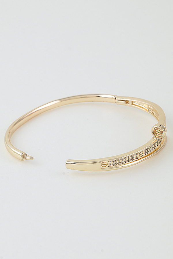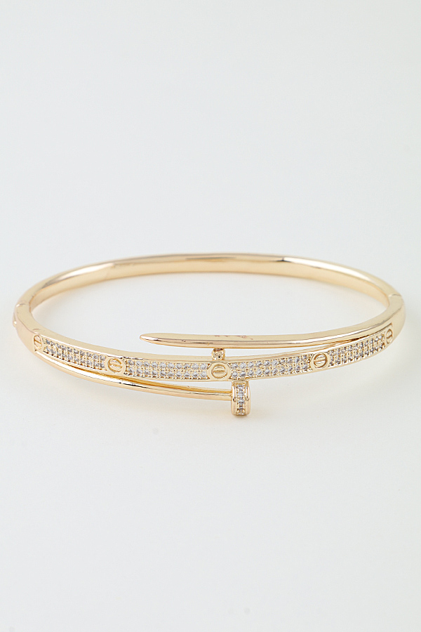 • * This is a Bejeweled Nail Cuff Bracelet from H&D Accessories, designed with a sleek cuff structure that features a distinctive nail-inspired detail, accented by shimmering embellishments for a modern, edgy touch. Its flexible, secure design ensures a comfortable fit across different wrist sizes. It’s a versatile accessory—perfect for adding a bold yet refined touch to a casual t-shirt and jeans outfit during a weekend outing, or elevating a sleek silk top and tailored pants for a office event, effortlessly infusing any look with contemporary style.