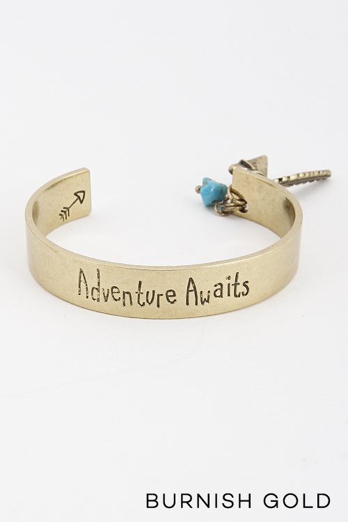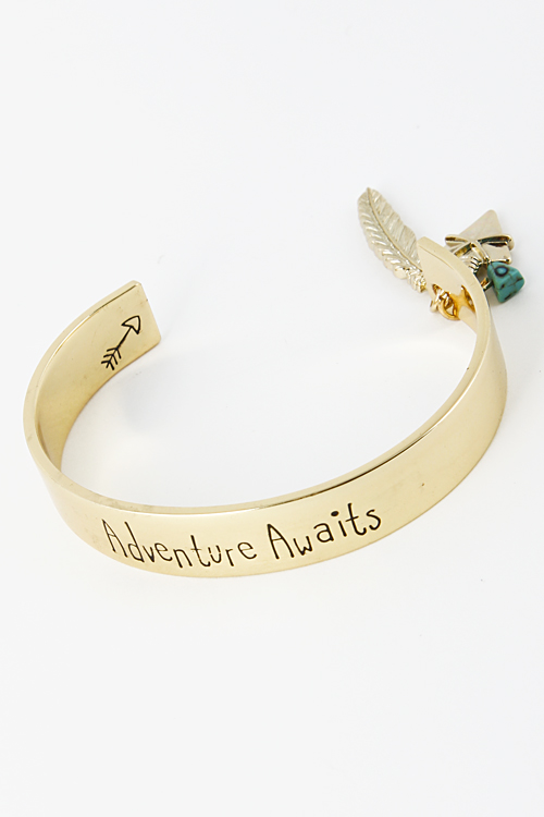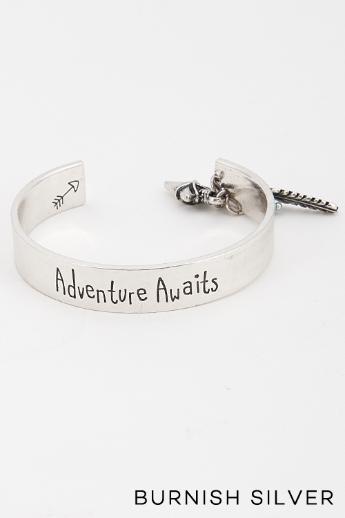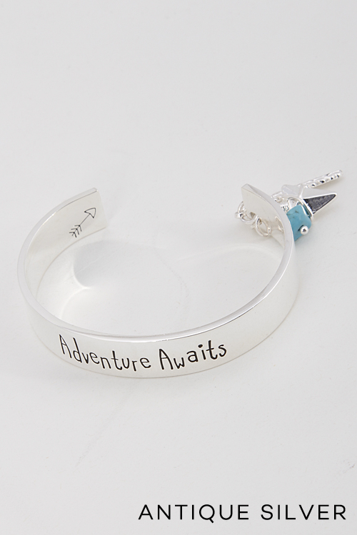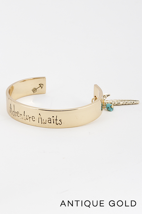 - * Adventure Awaits Charm Dangle Cuff Bracelet 5DDA9 * 2.5 x 1.9 x .4" approx.