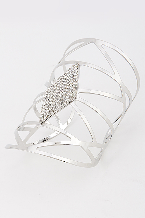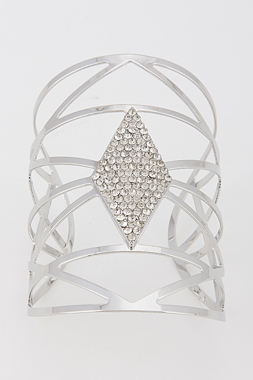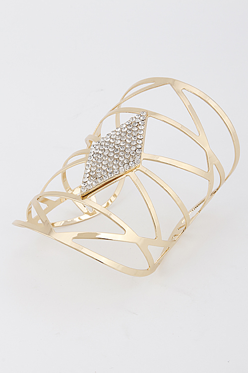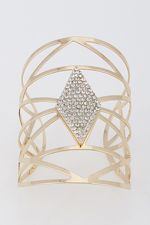 • *Thick Open Cut Bracelet With Diamond And Rhinestones 6BAH6 *2.7 X 2.2 X 4.2" approx.