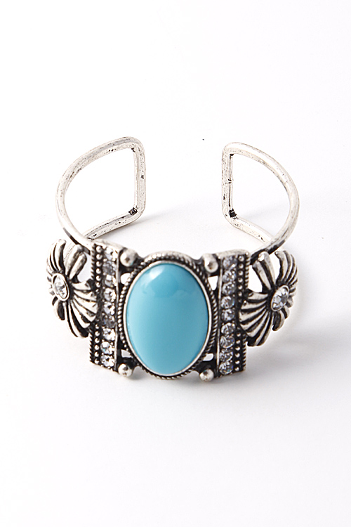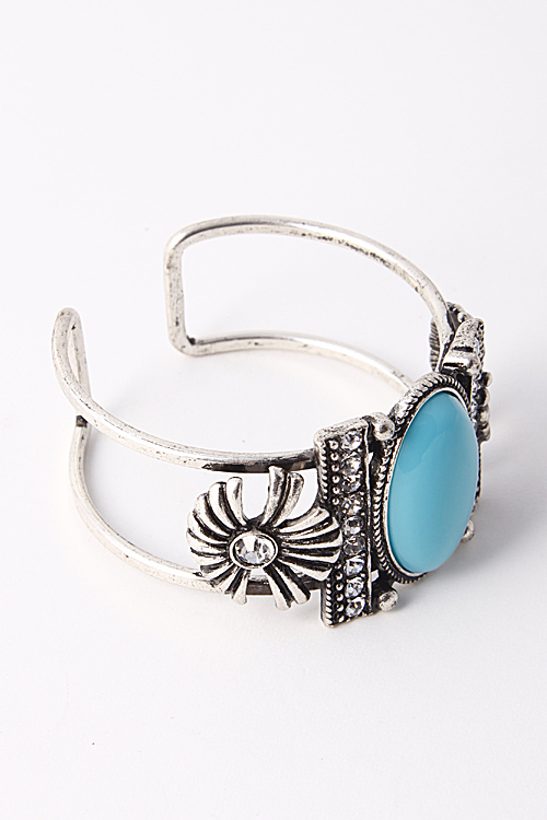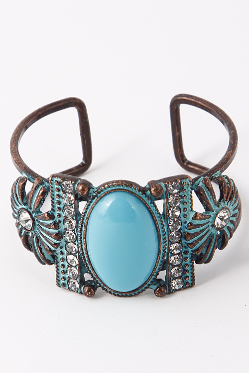- * Antique Center Turquoise Multi Rhinestone Cuff Bracelet 5ECJ2 * 2.5 x 2.5 x 1.5" approx.