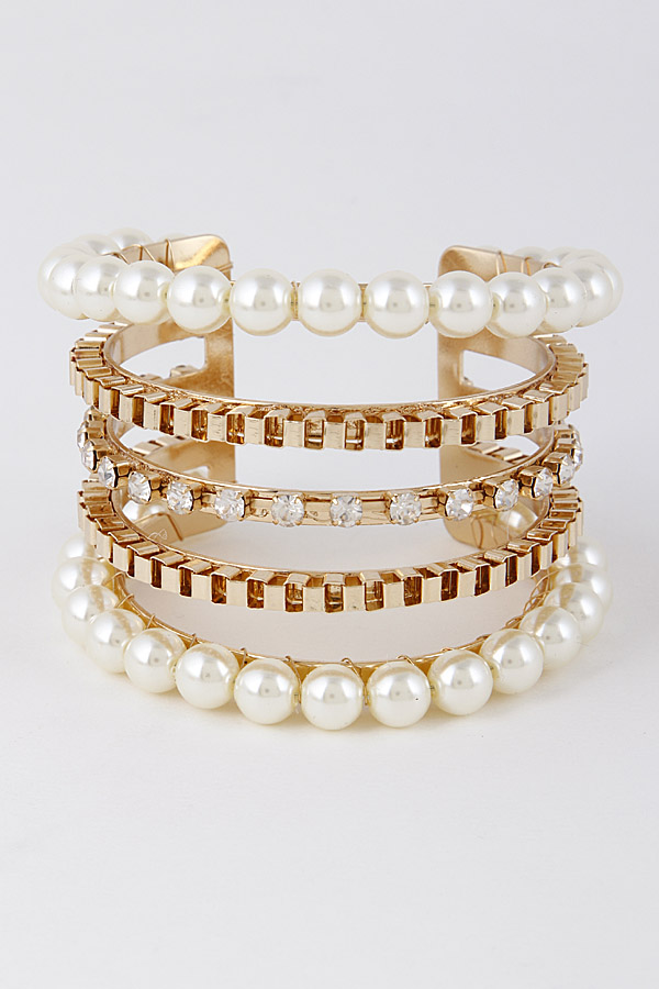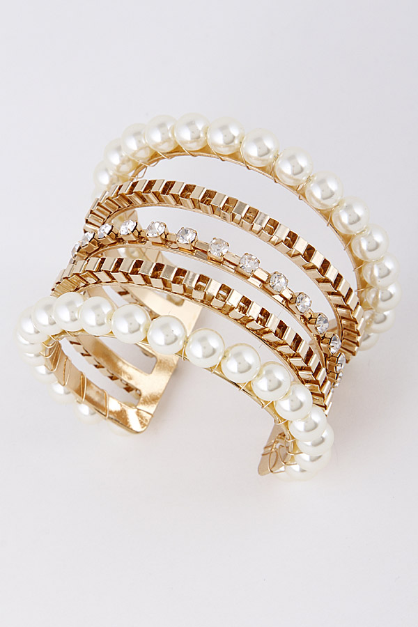 - * Cuff With Pearl And Rhinestone Bracelet 7LBG10