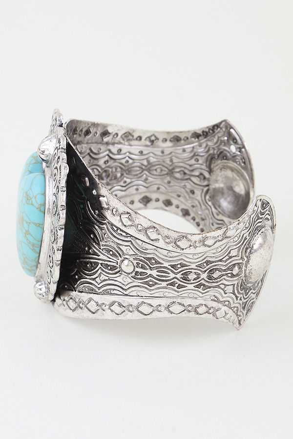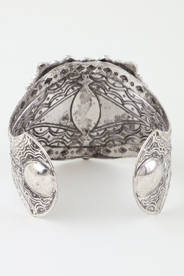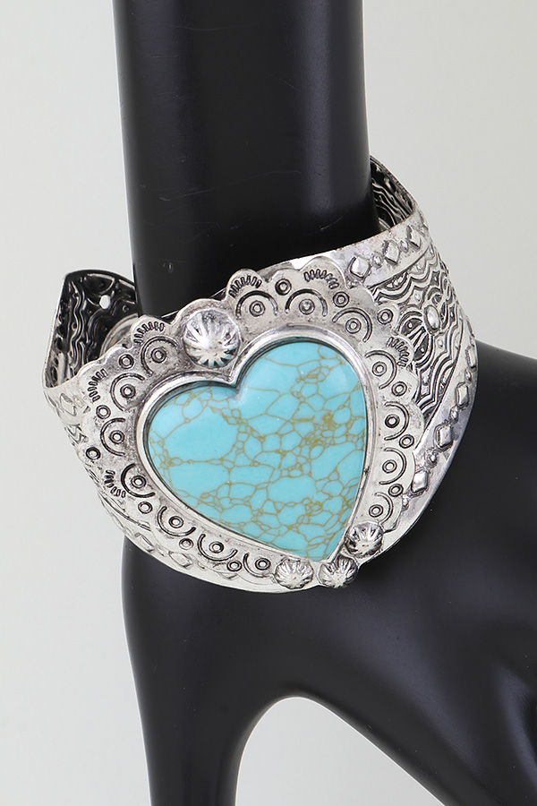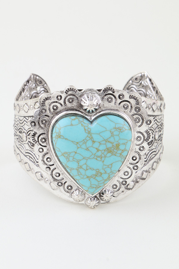 - * This is an Antique Stone Heart Cuff Bracelet from H&D Accessories. It showcases an intricately carved metal cuff with a heart - shaped stone at the center, surrounded by detailed patterns. Ideal for adding a touch of vintage charm to bohemian outfits, festival looks, or to complement Western - style attire.