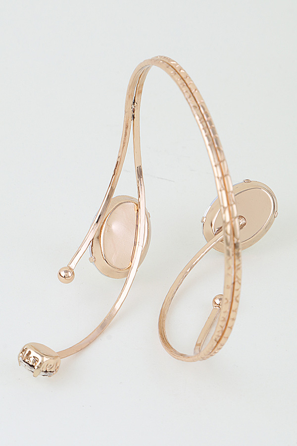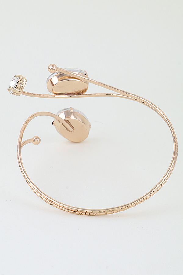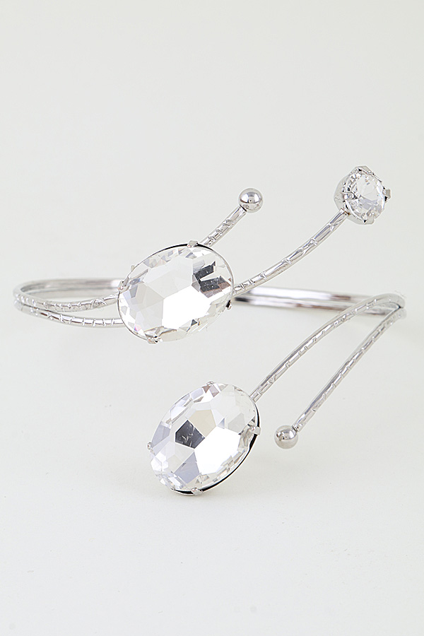 - * This Bejeweled Crystal Arm Cuff from H&D Accessories features an open, adjustable design with large, faceted focal stones set along textured, slender bands. Its multi-stone arrangement adds a glamorous, eye-catching element to any ensemble. Wear it to elevate a sleeveless gown at a formal event or to complement a minimalist dress for a cocktail party. The flexible construction ensures a comfortable, secure fit, making it a striking choice for special occasions.