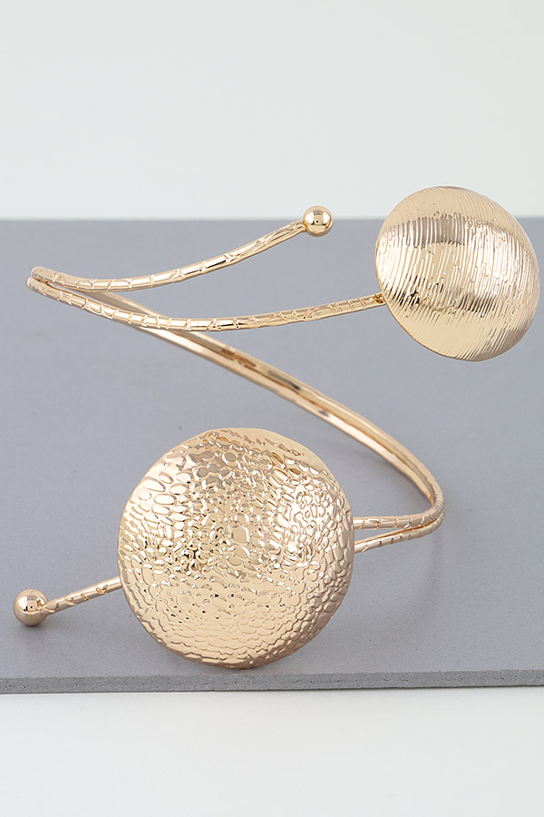 - * This Multi Beaded Dome Arm Cuff from H&D Accessories is a stunning piece of jewelry. It features a unique open - style design with elegantly curved bands. The cuffs are adorned with intricately textured dome - shaped elements, each showcasing a distinct beaded pattern that adds depth and visual interest. The craftsmanship highlights the blend of modern and artisanal elements, making it a statement accessory that effortlessly elevates any look.