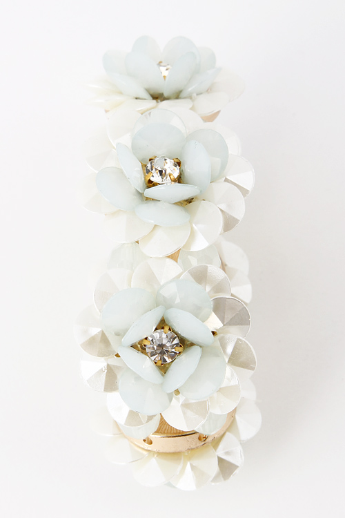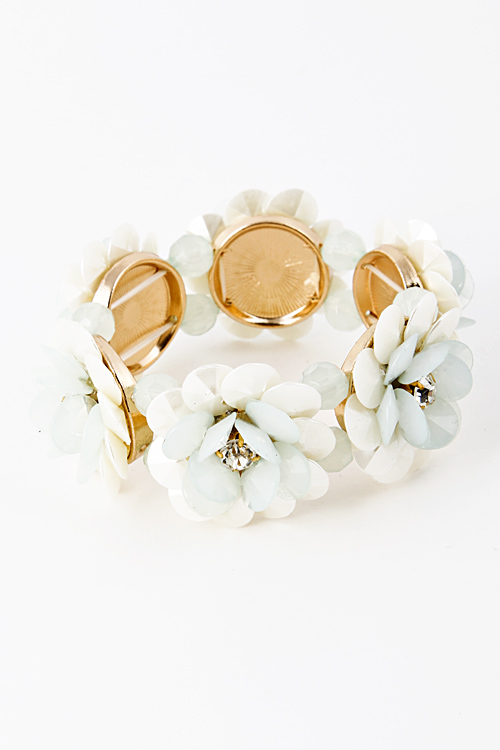 • * Flower Sparkly Beaded Stretch Bracelet 5BBD1 * 2.9 x 1.2" approx.