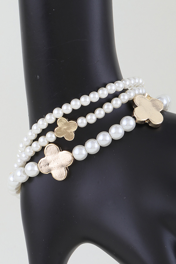 - * The Multi Clove Charm Beaded Bracelet from H&D Accessories is an elegant and charming piece. It features multiple strands of lustrous white beads, interspersed with shiny gold - toned clove - shaped charms. The combination of the classic beads and the distinctive charms creates a sophisticated and eye - catching accessory.