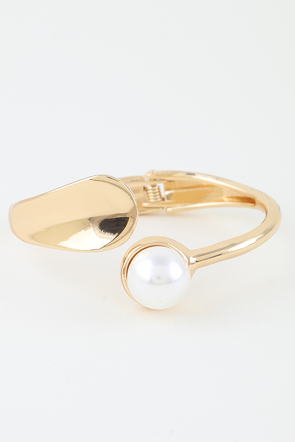 - * This is a bracelet with a unique design, featuring a curved metal piece and a spherical pearl - like adornment. It is the Pearl Beaded Wrap Cuff Bracelet, From H&D Accessories, showcasing an eye - catching structure with the pearl - beaded element and the wrap - around cuff style.