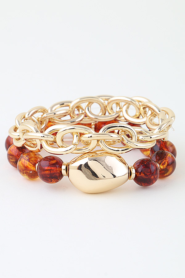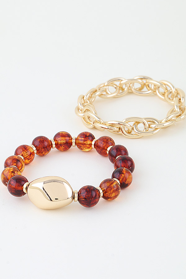 - * This Double Tortoise Beaded Chain Bracelet from H&D Accessories is a two-piece set that blends a beaded style (adorned with textured, patterned beads and a sleek, sculpted accent) with a bold, linked chain design. The combination of detailed beading and substantial chain links offers versatile styling options: pair both pieces together for a layered, dynamic look when heading to a casual dinner, or wear the beaded one alone to add a subtle, textured touch to a weekend brunch outfit. Its balanced mix of intricate and modern elements makes it a fitting accessory for both relaxed daily moments and low-key social gatherings.