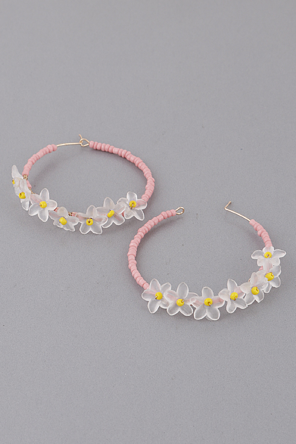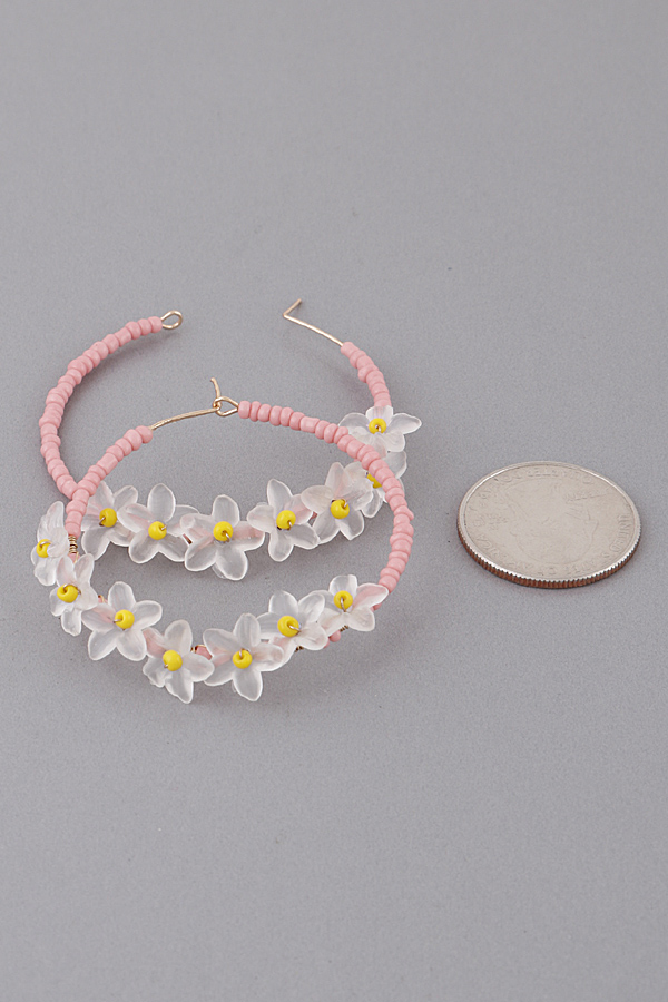 - * Beaded Flower Hoop Earrings