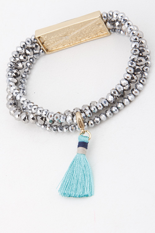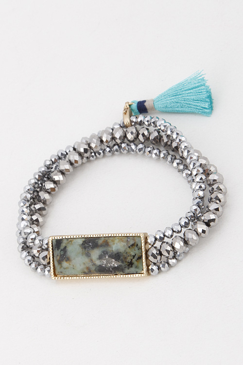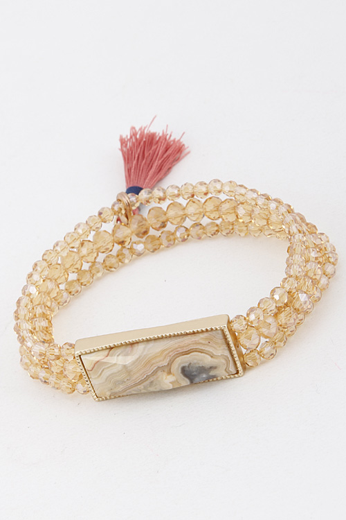 - * Rectangle Faux Stone Stretch Bracelet with Tassel Detail 5JBA8 * 3X2.3" approx.
