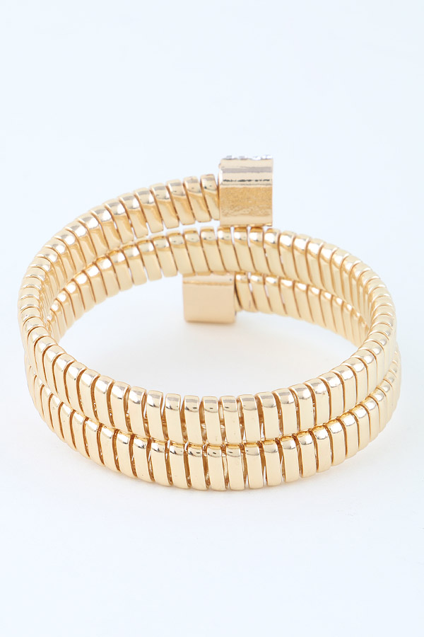 • * The Bejeweled Cubic Chain Wrap Bracelet from H&D Accessories is a sophisticated and glamorous accessory. It showcases a coiled chain design, exuding elegance and fluidity. The bracelet is embellished with sparkling cubic - shaped stones, adding a touch of luxury and making it a statement piece.