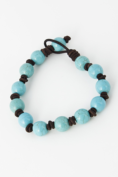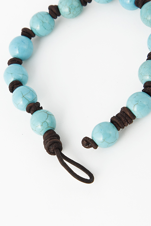• * Turquoise Stone Bead Strap Tied Hinge Bracelet 5EAB1 * 2.3 x 2.3 x .3" approx.