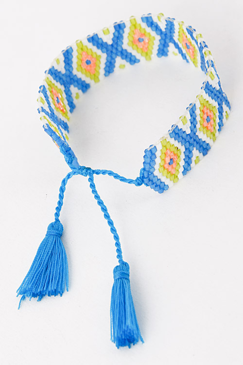 • * Yarn Tassel Multicolor Beaded Strap Bracelet 5DAC3 * 2 x .7" approx.