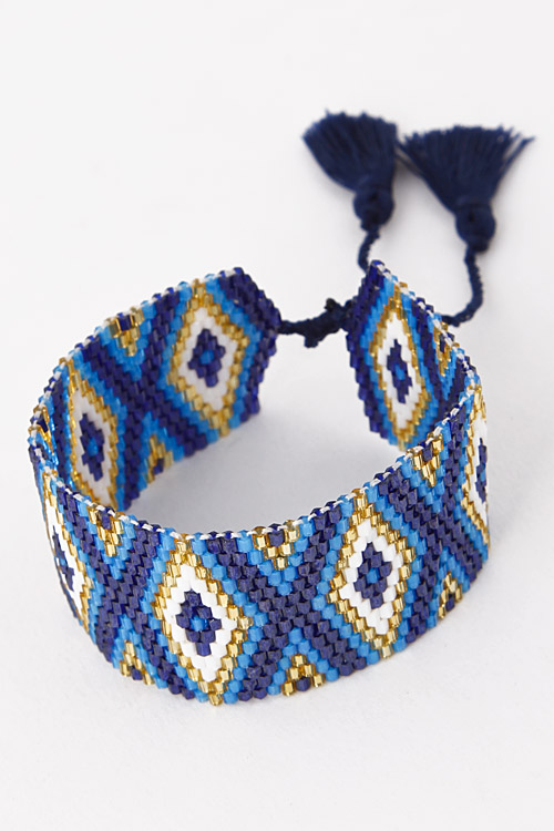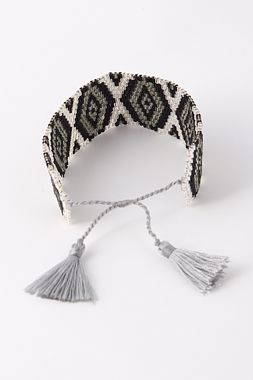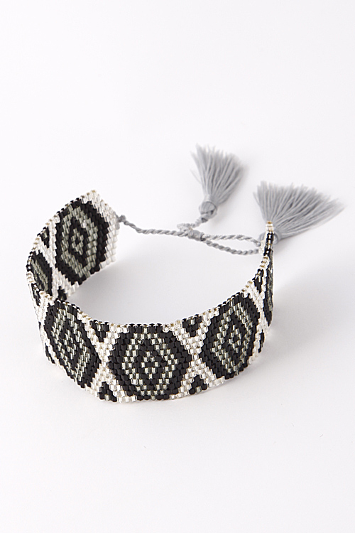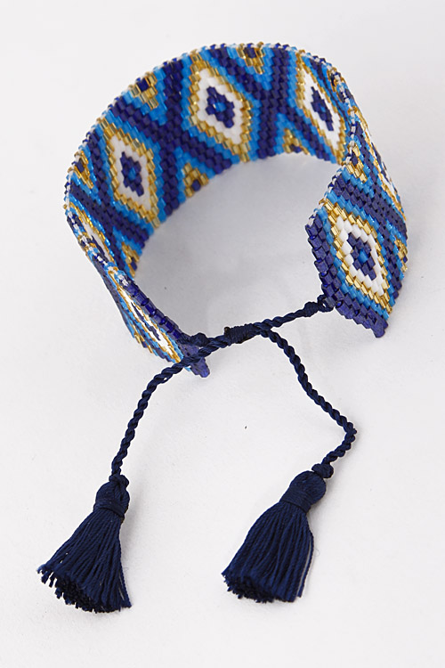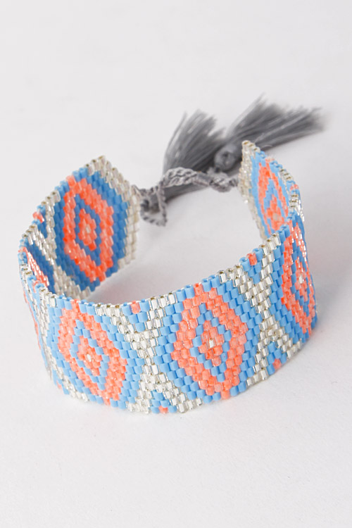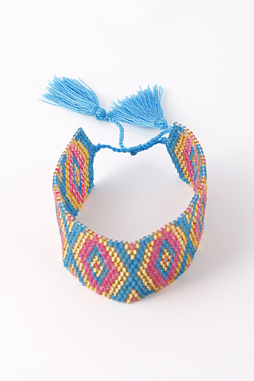 • * Diamond Patterned Bead Tassel Bracelet 5EBJ13 * One Size