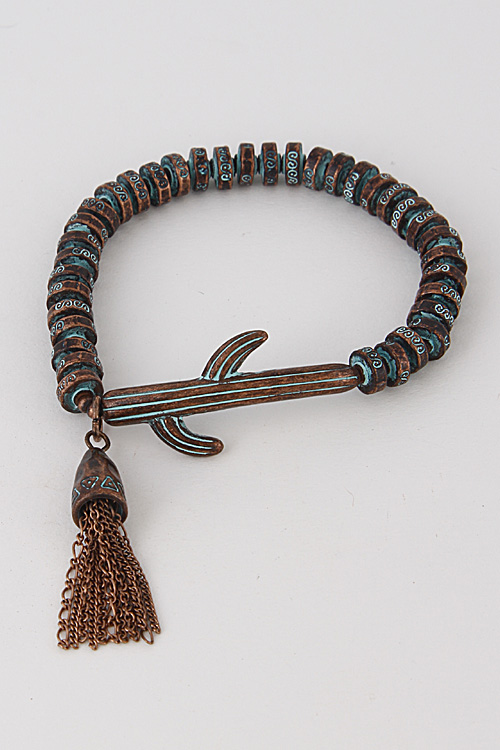 • * Antique Inspired Bracelet With Tassel And Cactus 6IBE4 * 2.5 X 2.5" approx.