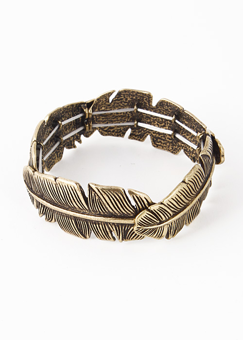 - * Feather Cutout Connected Stretch Bracelet 5FAJ9 * 2.5 x .6" approx.