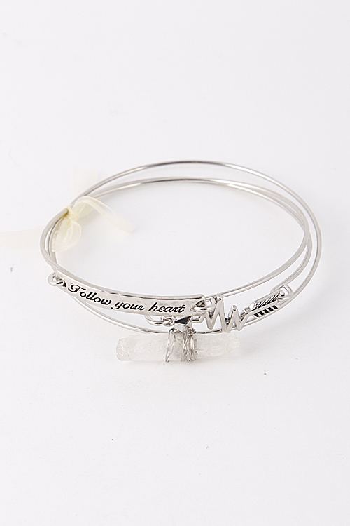 - * Follow Your Heart Stone Cham Bangle Bracelet 5ECJ6 * 2.5 x 2.5" approx.