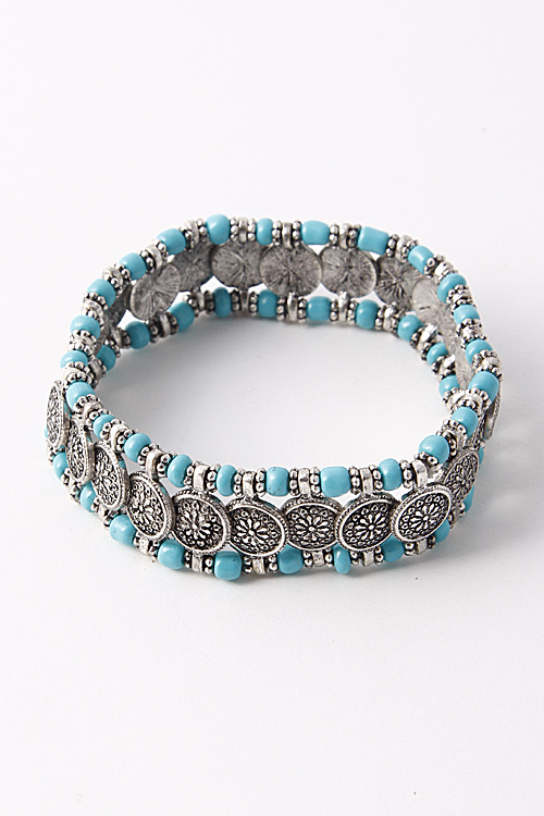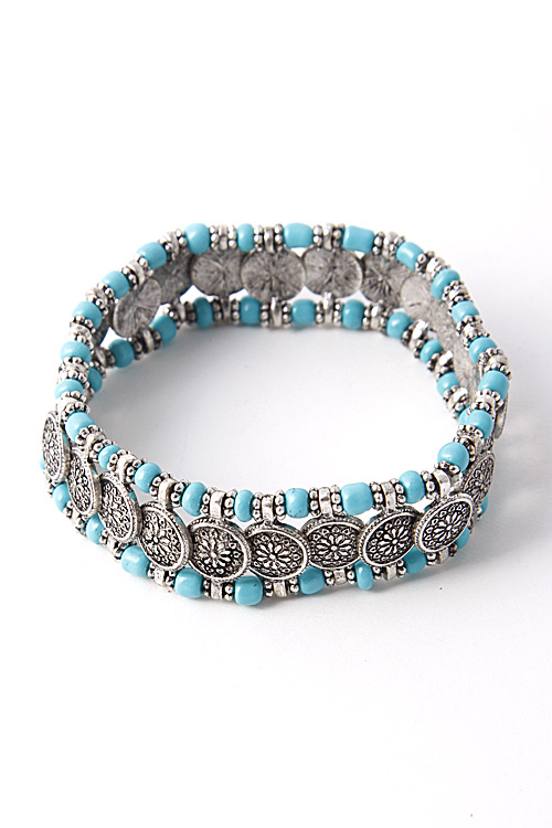 - * Circle Design Turquoise bead Strap Bracelet 5ECJ2 * 2.5 x 2.5" approx.