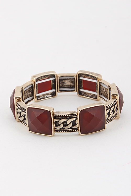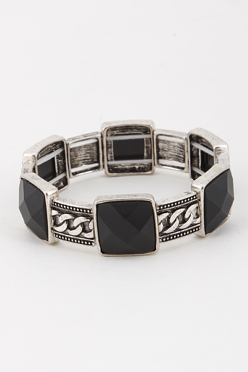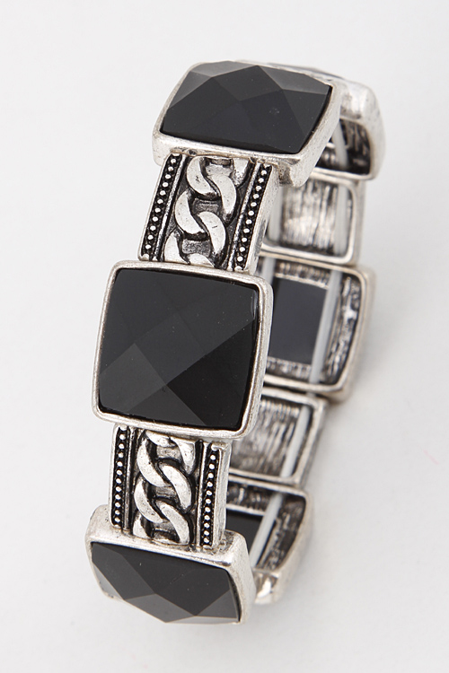 - * Square Faux Stone with Chain Detail Stretch Bracelet 5JBA4 * 2.5X1.8" approx.