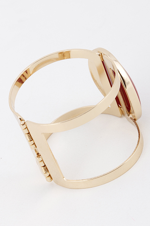 • * Faux Round Stone Cuff Bracelet 5JBA4 * 2.5X1.8" approx.