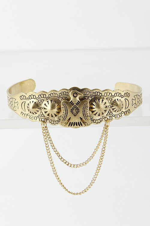 • * Eagle Charm Antique Marked Chain Cuff Bracelet 5GBA6 * 2.5 x 2.1 x 2" approx.