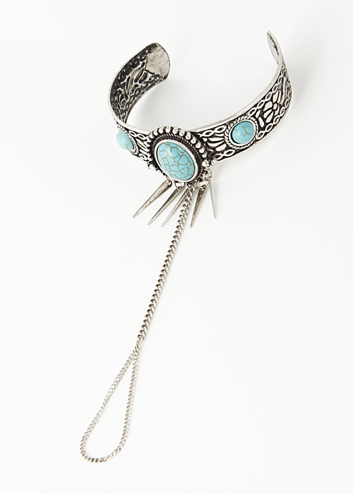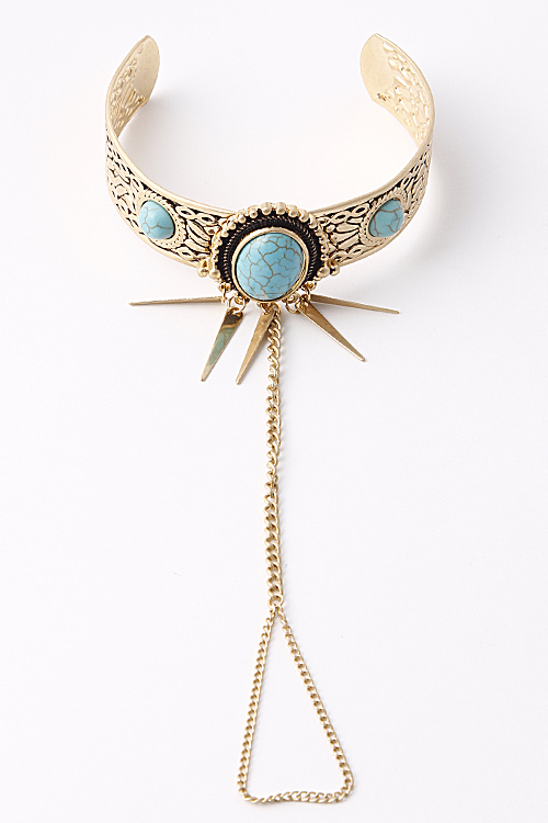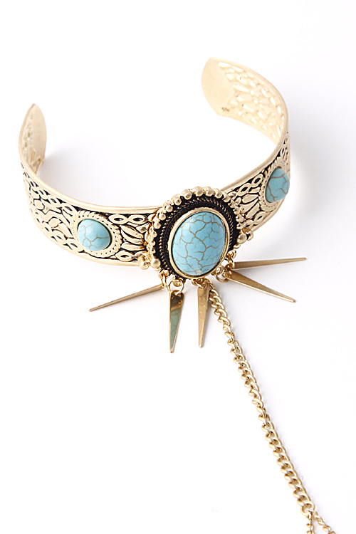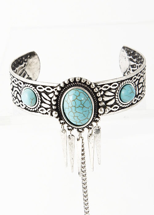 • * Multi Circle Turquoise Stone Chain Linked Cuff Bracelet 5FBA18 * 2.5 x 4" approx.