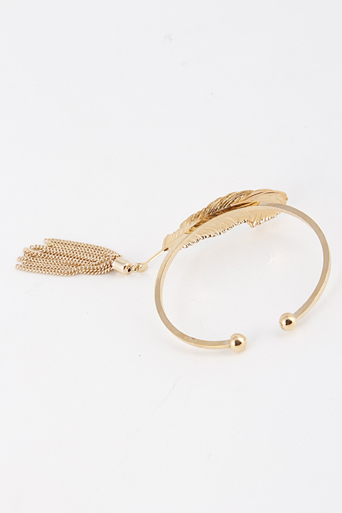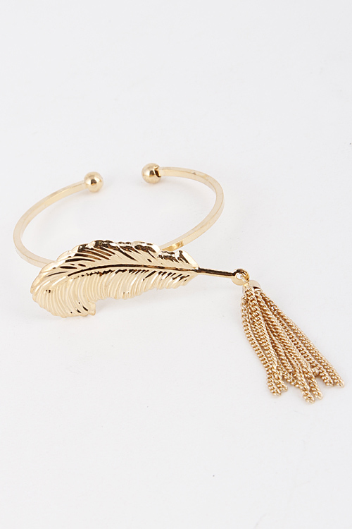 • * Feather Open Cuff Bracelet with Tassle Detail 5ICH8 * 5X6" approx.