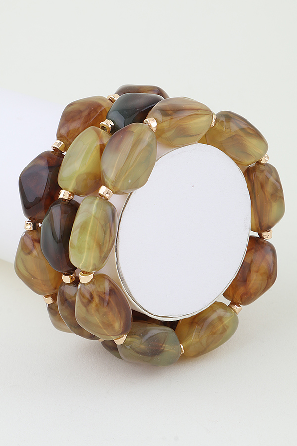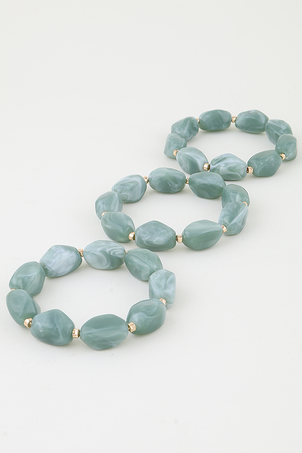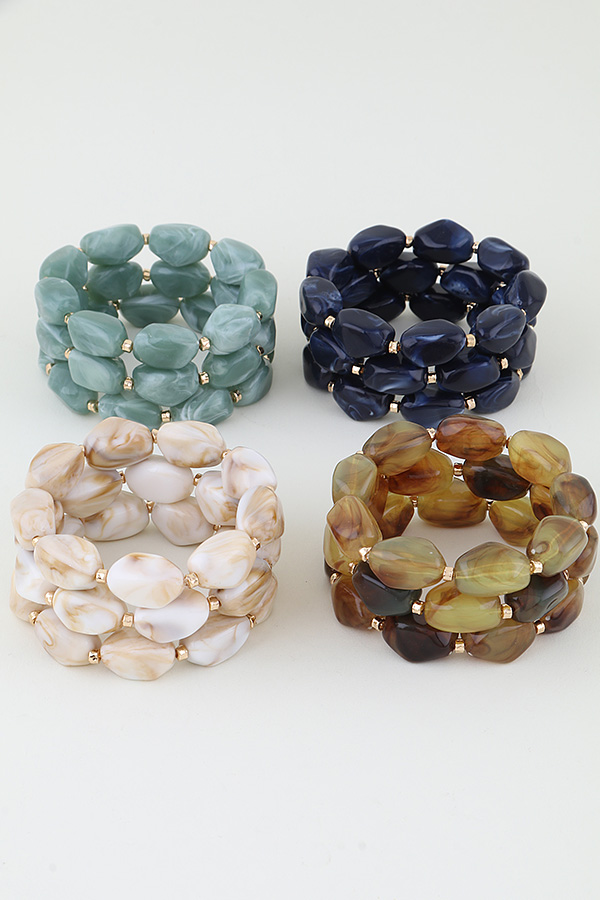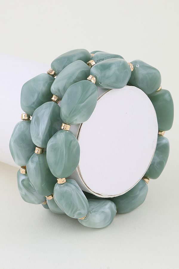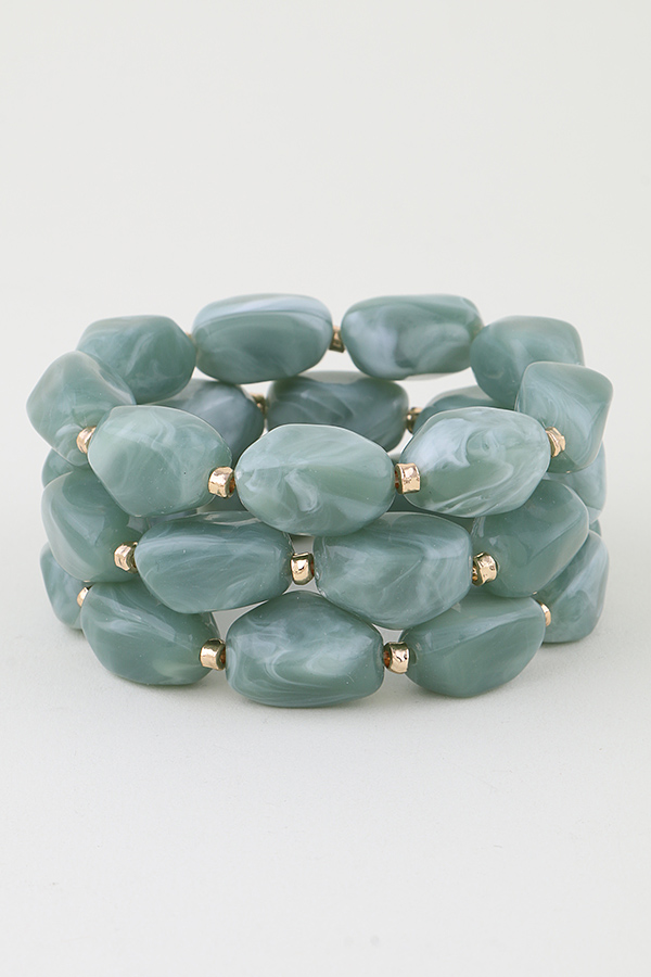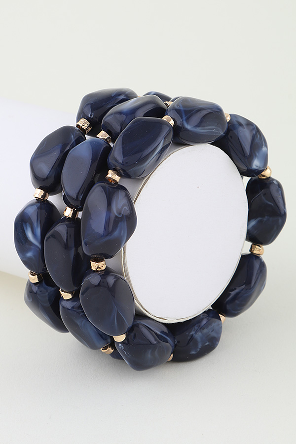 • * This Abstract Marble Stone Beaded Bracelet from H&D Accessories features a multi-layered design with irregularly shaped marble stone beads. The beads exhibit unique, swirling textures, and are interspersed with metal accents, creating a striking visual contrast. Meticulous craftsmanship is evident in the secure arrangement of each bead, resulting in a piece that blends artistic abstraction with elegant detailing, making it a distinctive choice for jewelry lovers.