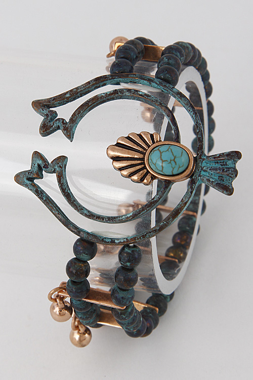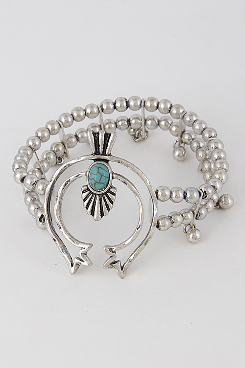 • * Multi Beaded Crescent Stone Bracelet 6IBG6 * 2.5 x 2.5" approx.