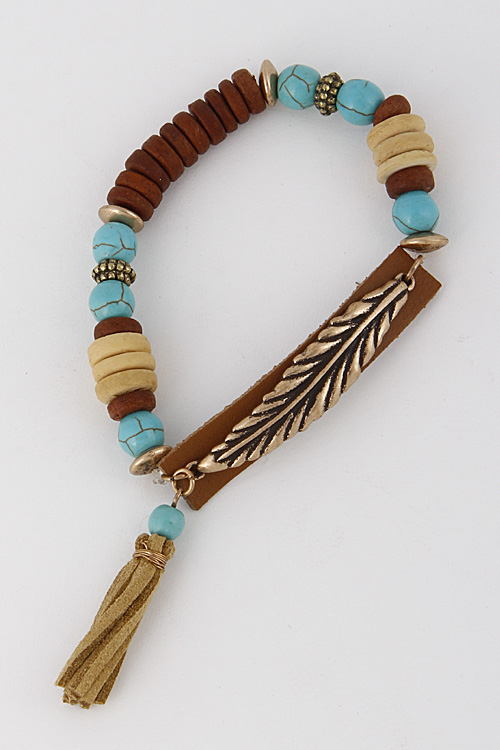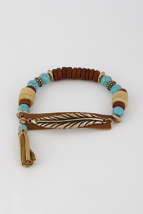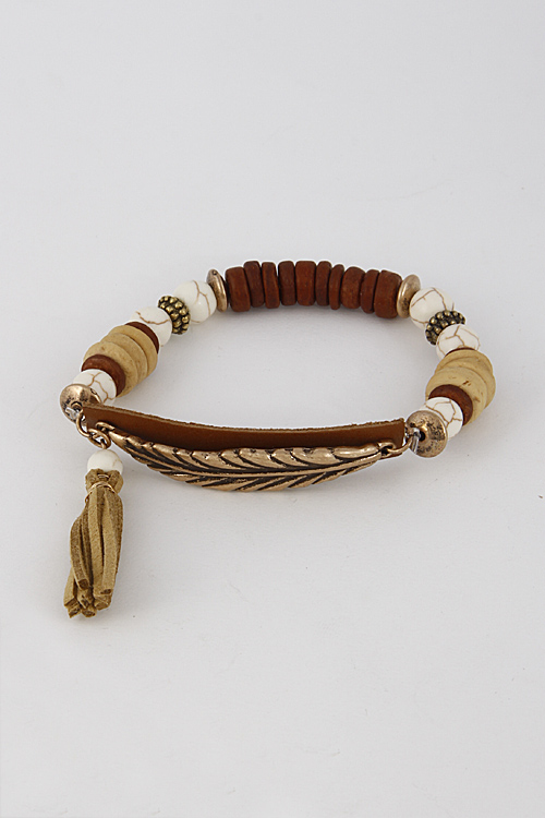 • * Beaded Bracelet With Blank Rectangle And Tassel 6DCB6 * 2.2 X 2" approx