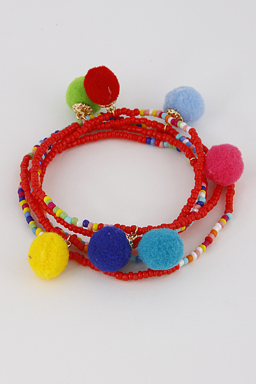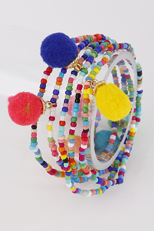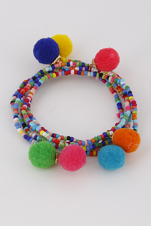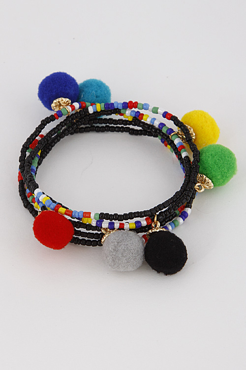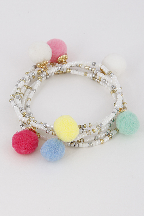 • * Mixed Beads Pom Pom Bracelet 7ECA6 * 2.2 x 2.2" approx.