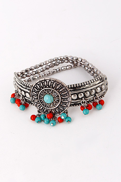 - * Two Tone Bead Dangle Arm Bracelet 5EBJ12 * One Size