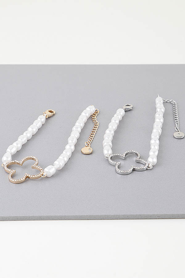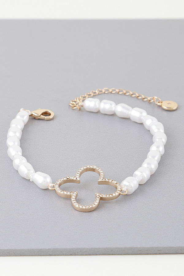- * Introducing the "Open Clover Pearl Beaded Bracelet" – a stunning white pearl bracelet that beautifully combines the timeless allure of pearls with the luxurious touch. Elevate your accessory game with this exquisite piece from H&D Accessories, perfect for any occasion.