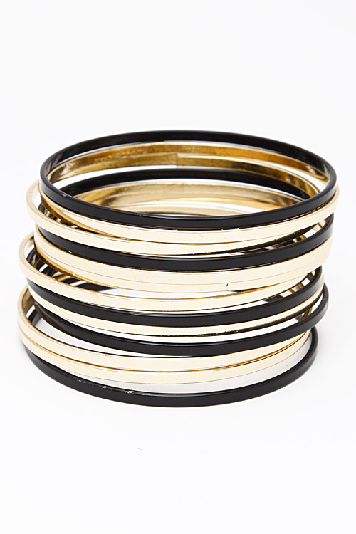 - * Two Tone Metal Bangle Set Bracelet 5BBH6 * 2.8 x 2.8" approx.