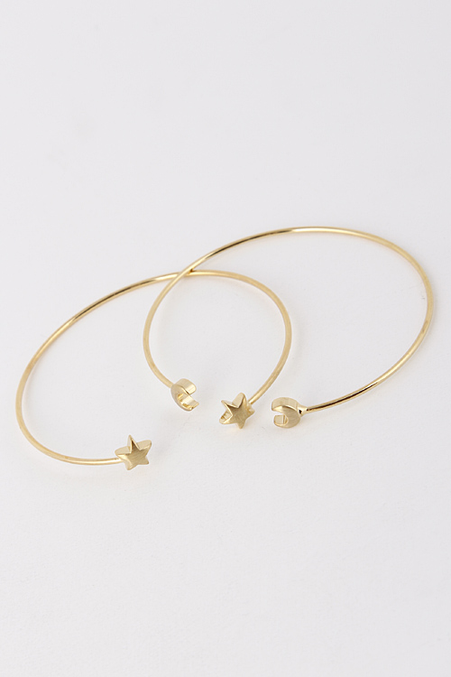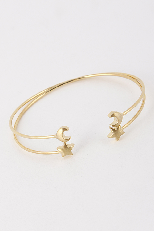 • * Crescent Moon Star Cutout Double Cuff Bracelet 5DBG2 * 2.2 x .5" approx.